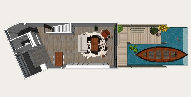 Wanneer er een definitieve overeenstemming is over de indeling van alle ruimtes tussen de klant en Buro BeRT, gaat het proces over tot het tekenen in 3D. Buro BeRT geeft de klant hiermee de mogelijkheid zich goed in te leven in hoe de ruimtes er uiteindelijk uit komen te zien. Tijdens deze stap wordt ook een moodboard gepresenteerd voor de keuze in stoffering, meubilair e.d.